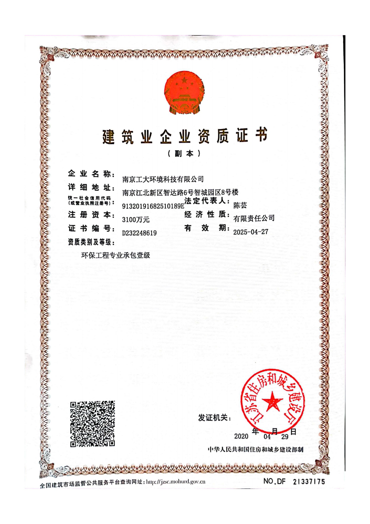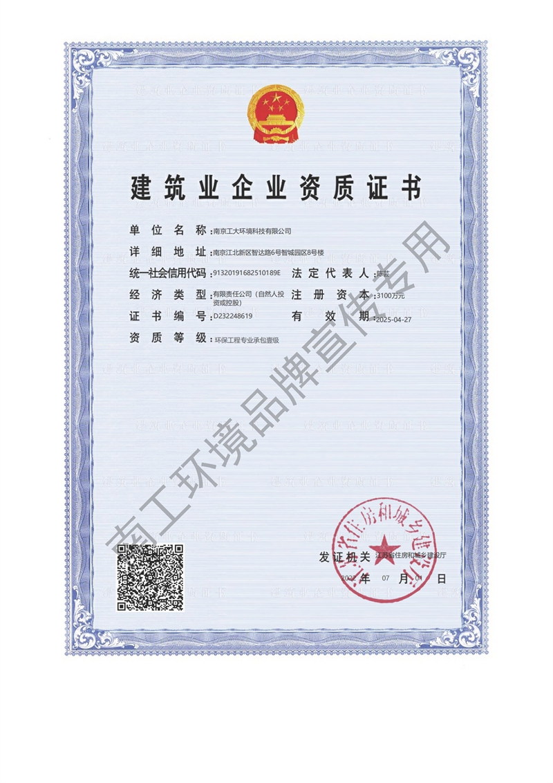 建筑业企业环保工程专业承包壹级